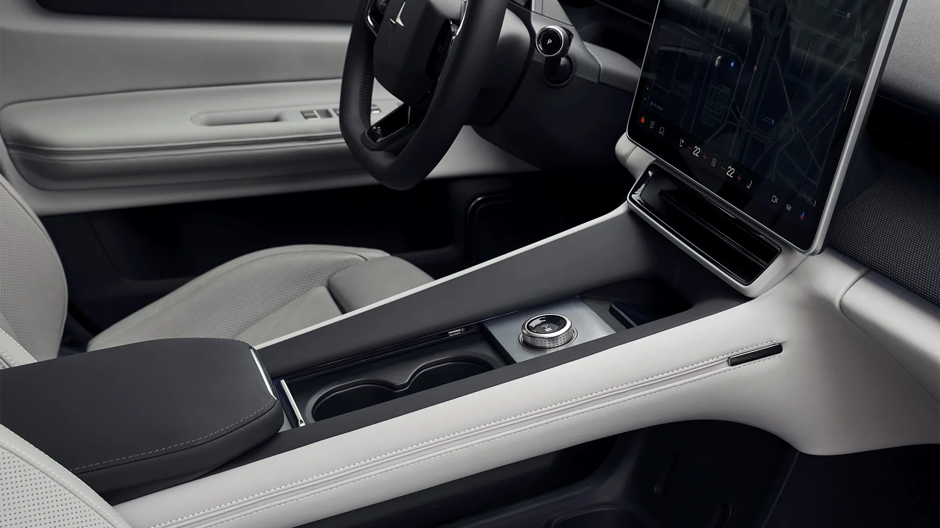 In der hohen Mittelkonsole verbergen sich u. a. Cupholder, eine induktive Ladeschale und zwei USB-C-Anschlüsse.
