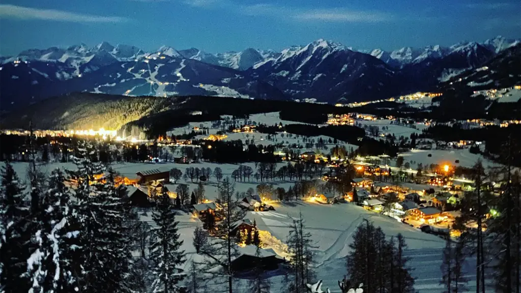 Und weil die Anfahrt so entspannt war, darf es am Abend dann gleich mal eine Abfahrt sein, mit dem Rodel von der Hochwurzen: Sieben Kilometer durch den nächtlichen Winterwald, die Lichter aus dem Tal funkeln herauf, diese Piste ist top präpariert, es fehlt nur etwas an Bauchmuskulatur und ganz schön zapfig-kalt ist es auch. Ein letzter Slide – und rein in die urige Tauernalm.