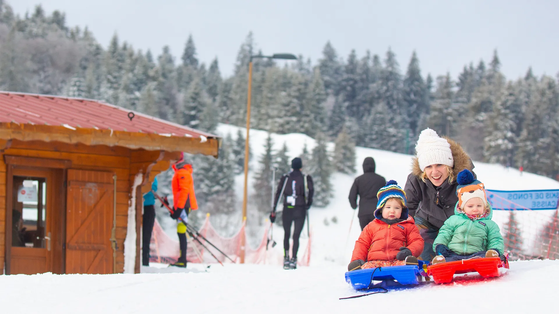 Statt Après-Ski-Partys gibt es knirschenden Schnee unter den Füßen und das Lachen von Kindern. Das Skigebiet ist ideal für Familien: 13 Abfahrten in allen Schwierigkeitsgraden (grün, blau, rot), ein Snowpark für Mutige und ein überschaubares Netz von Liften.